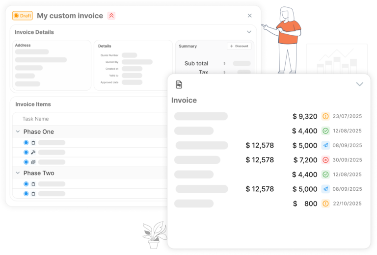Customizable tasks, projects, invoices, and quotes – all ready in one click.