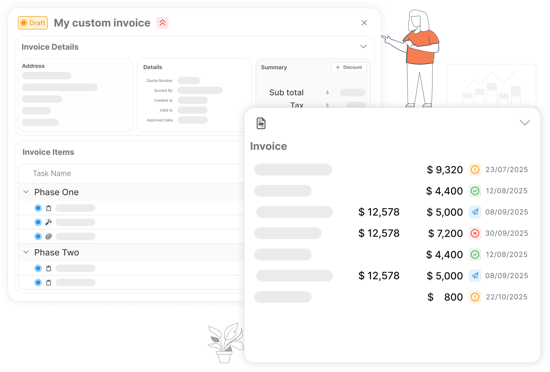 Every detail matters when creating an invoice. Be assured with ProWorkFlow’s invoice templates that easily incorporate all the important information you need.